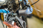 Zdjęcie "Przerzutka tylna złamane rowerów. Ręce trzymać części tylnej przerzutki, które rozpadło się na pół. Próba naprawy awarii." może być wykorzystywane do celów osobistych i komercyjnych zgodnie z warunkami zakupionej licencji Royalty-free. Obraz jest dostępny do pobrania w jakości wysokiej rozdzielczości do 5760x3840.