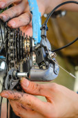 Zdjęcie "Przerzutka tylna złamane rowerów. Ręce trzymać części tylnej przerzutki, które rozpadło się na pół. Próba naprawy awarii." może być wykorzystywane do celów osobistych i komercyjnych zgodnie z warunkami zakupionej licencji Royalty-free. Obraz jest dostępny do pobrania w jakości wysokiej rozdzielczości do 5760x3840.