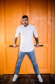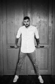 Zdjęcie "młody przystojny mężczyzna pozowanie na tle drzwi" może być wykorzystywane do celów osobistych i komercyjnych zgodnie z warunkami zakupionej licencji Royalty-free. Obraz jest dostępny do pobrania w jakości wysokiej rozdzielczości do 5760x3840.