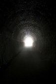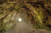 Światło na końcu tunelu w Myra Canyon w Kelowna, Kolumbia Brytyjska, Kanada. Koncepcja podboju przeciwności lub sukcesu przez przeszkody.