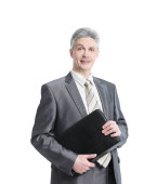 Executive biznesmen z documents.isolated na białym