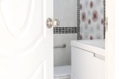 Nowoczesny projekt domu łazienka toaleta i umywalka biały gniada sanitarne w łazience