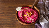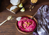 Zdjęcie "Palone buraków hummus w misce z ciecierzycy, nasiona sezamu i zdrowy układy drewnianych powierzchni. Koncepcja przekąsek" może być wykorzystywane do celów osobistych i komercyjnych zgodnie z warunkami zakupionej licencji Royalty-free. Obraz jest dostępny do pobrania w jakości wysokiej rozdzielczości do 5760x3840.