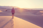 Zdjęcie "Turysta w piasku pustyni, o zachodzie słońca " może być wykorzystywane do celów osobistych i komercyjnych zgodnie z warunkami zakupionej licencji Royalty-free. Obraz jest dostępny do pobrania w jakości wysokiej rozdzielczości do 5760x3840.