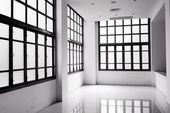 Przemysł budowy budynku domu pusty pokój wnętrze okna i drzwi czarny aluminium na ścianie