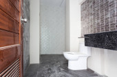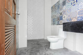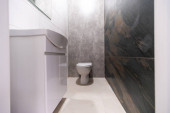 Zdjęcie "Nowoczesny projekt domu łazienka biały sanitarne w łazience. W budowie" może być wykorzystywane do celów osobistych i komercyjnych zgodnie z warunkami zakupionej licencji Royalty-free. Obraz jest dostępny do pobrania w jakości wysokiej rozdzielczości do 5760x3840.