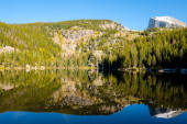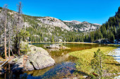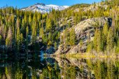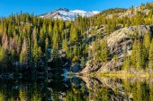 Lone Pine Lake z skały i góry, wokół, w jesieni. Rocky Mountain National Park w stanie Kolorado, Usa.