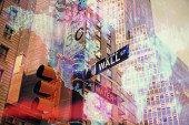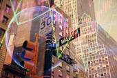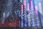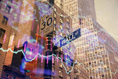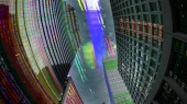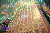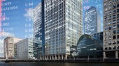 London docklands z danych i programowania informacje mapowane na każdej ze ścian budynku na komputerze