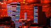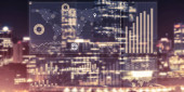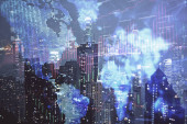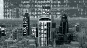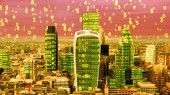 panoramę miasta Londyn z danych a komputerem programowania informacje mapowane na fasady budynków