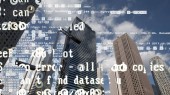 panoramę miasta Londyn z danych a komputerem programowania informacje mapowane na fasady budynków