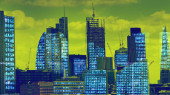 London city z telewizji glitch i zniekształcenia mapowane nad panoramę