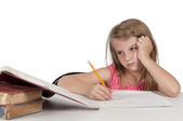 Zdjęcie "Zmęczony młodych cute blond uczennica z nauką myśleć o studiach. koncepcja problemy edukacji na izolowany na białym tle" może być wykorzystywane do celów osobistych i komercyjnych zgodnie z warunkami zakupionej licencji Royalty-free. Obraz jest dostępny do pobrania w jakości wysokiej rozdzielczości do 5760x3840.