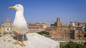 Wenecja, Włochy - 11 września 2016: dumny Mewa wylądował na stole ulicznych kawiarni w pobliżu Palazzo Ducale