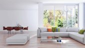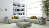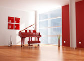 Pokój dzienny z Nowoczesna willa z sofą i fortepian - 3d renderowania
