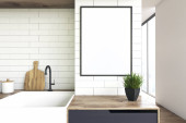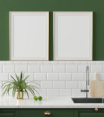 Makiety ramkę plakatu w kuchni tło wnetrze zbliżenie, 3d render