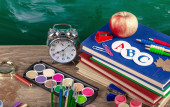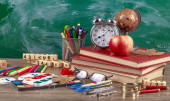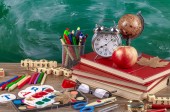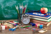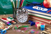 Przybory szkolne dla badania składu na stole
