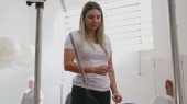 Młoda lekarka z kobiece rozmowy pacjenta w szpitalu