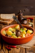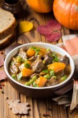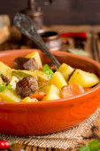 Gulasz wołowy z warzywami ziemniaki, marchew, pyszne danie jesień okaszenie