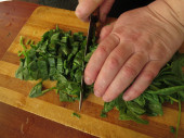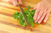 Grubo siekanie amaranth warzywa na pokładzie cięcia