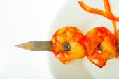 Zdjęcie "Zbliżenie marokański czerwony gorący chilles z królem krewetki na szaszłyki na niebieski płyta" może być wykorzystywane do celów osobistych i komercyjnych zgodnie z warunkami zakupionej licencji Royalty-free. Obraz jest dostępny do pobrania w jakości wysokiej rozdzielczości do 5760x3840.