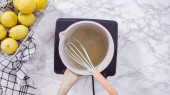 Krojenie na plastry cytryny organicznej na pokładzie cięcia drewna.