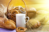 kosz bułeczki, pieczywo i zboża