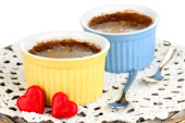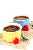 budyń czekoladowy w miski do pieczenia, na białym tle