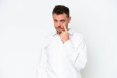 Zdjęcie "Zbliżenie z działalności człowieka, patrząc podejrzliwie na białym tle na białym tle" może być wykorzystywane do celów osobistych i komercyjnych zgodnie z warunkami zakupionej licencji Royalty-free. Obraz jest dostępny do pobrania w jakości wysokiej rozdzielczości do 5760x3840.