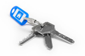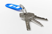 Brelok na klucze z jednego klucza na białym tle. Wynajem, Kupię