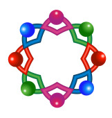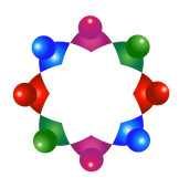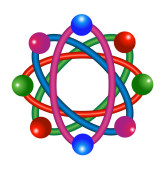 Wektor streszczenie kolorowe atomowej molekularnej zespół laboratorium ikona logo