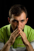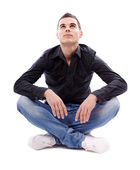 mężczyzna siedzi na kanapie