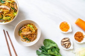 mieszać-smażone yakisoba makaron z warzywami - potrawy wegetariańskie i wegańskie