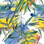 Zdjęcie "Oliwnik pozostawia w stylu przypominającym akwarele. Bezszwowe tło wzór. Tkanina tapeta tekstura wydruku. Aquarelle liść dla tła, tekstura, wzór otoki, ramki lub granicy." może być wykorzystywane do celów osobistych i komercyjnych zgodnie z warunkami zakupionej licencji Royalty-free. Obraz jest dostępny do pobrania w jakości wysokiej rozdzielczości do 5760x3840.