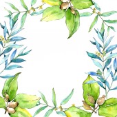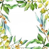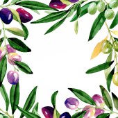 Oliwnik pozostawia w stylu przypominającym akwarele. Ramki granicznej ornament placu. Aquarelle liść dla tła, tekstura, wzór otoki, ramki lub granicy.