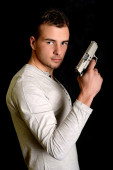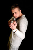Zdjęcie "Młody człowiek z bronią" może być wykorzystywane do celów osobistych i komercyjnych zgodnie z warunkami zakupionej licencji Royalty-free. Obraz jest dostępny do pobrania w jakości wysokiej rozdzielczości do 5760x3840.