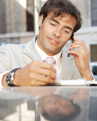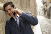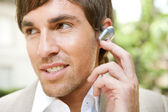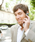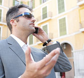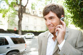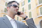 młody biznesmen rozmowy na telefon komórkowy w mieście.