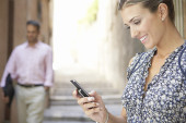 Zdjęcie "widok profilu atrakcyjna kobieta siedzi w gmachu jest kwadrat przy użyciu tabletu inteligentny telefon." może być wykorzystywane do celów osobistych i komercyjnych zgodnie z warunkami zakupionej licencji Royalty-free. Obraz jest dostępny do pobrania w jakości wysokiej rozdzielczości do 5760x3840.