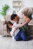 dzieci, sprzedaż wiązana rodziców z liny na piętrze w domu, koncepcja rodzicielstwa