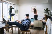 Zdjęcie "rodzice siedzący związany z liny na podłodze i dzieci w domu, przytrzymanie schowka koncepcja rodzicielstwa" może być wykorzystywane do celów osobistych i komercyjnych zgodnie z warunkami zakupionej licencji Royalty-free. Obraz jest dostępny do pobrania w jakości wysokiej rozdzielczości do 5760x3840.