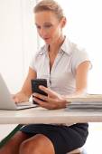 atrakcyjny biznesmen na drewnianej ławce w gmachu przy użyciu komputera przenośnego