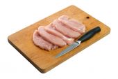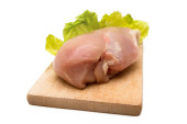 mięso z kurczaka pokrojone na deska do krojenia na białym tle