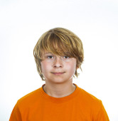 ładny roześmiany szczęśliwy chłopiec na białym tle