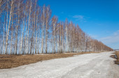 Brzozowy las, wczesną wiosną. Wczesną wiosną lasu. pierwsze ciepłe dni