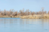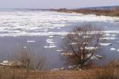 Powódź. Rozdarty rzeka lodu. Rzeka z ostatnim lodu. Rzeki Rosji Tatarstan Kama wczesną wiosną