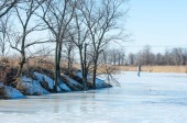 Zamarznięte jezioro na wiosnę. lód wiosna