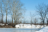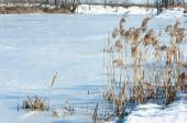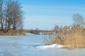 Zamarznięte jezioro na wiosnę. lód wiosna