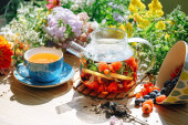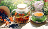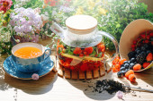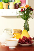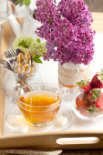 śniadanie z kawą i truskawki