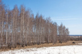 Brzozowy las, wczesną wiosną. Wczesną wiosną lasu. pierwsze ciepłe dni