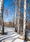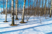 Brzozowy las, wczesną wiosną. Wczesną wiosną lasu. pierwsze ciepłe dni