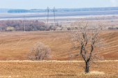Pole zaorane, zasiane zboża. Zaorane pole w wiosenny dzień. Zaorane pole w czarnej ziemi. Zaorane pole w błękitne niebo